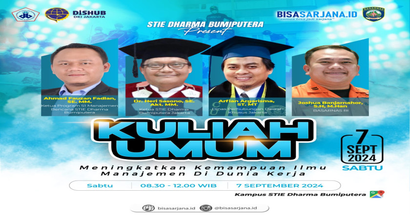KULIAH UMUM Mahasiswa STIE Dharma Bumiputera Jakarta yang di selenggarakan oleh BISASARJANA.ID bekerjasama dengan instansi terkait, dengan tema:
